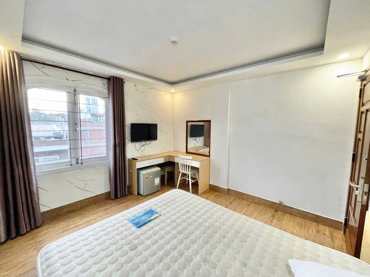 Mô tả: dạng phòng khách sạn với đủ nội thất cơ bản, có cửa sổ thoáng, có thang máy, giặt chung, không bếp (có thể set up bếp điện)